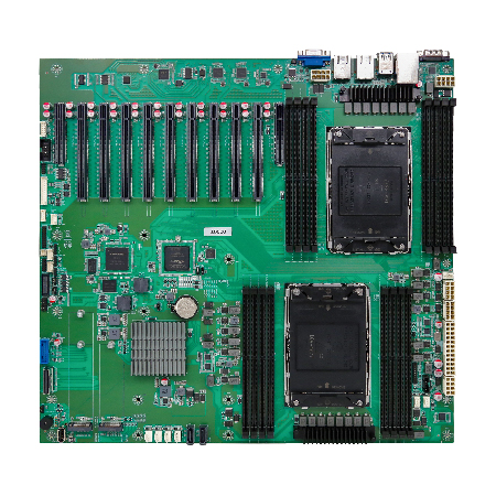 支持双路Intel第4/5代至强可扩展处理器, 9*PCle x16, 2*PCle x8, 1*Slim-SAS 8i, 3*千兆网口